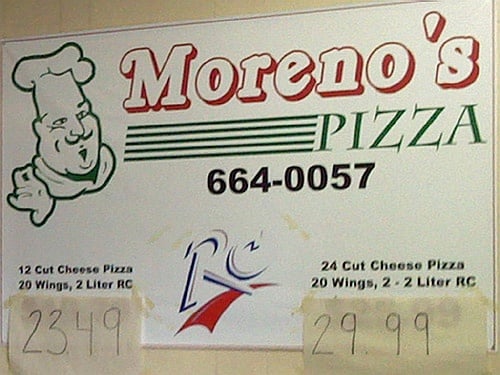 Moreno's Pizza Menu